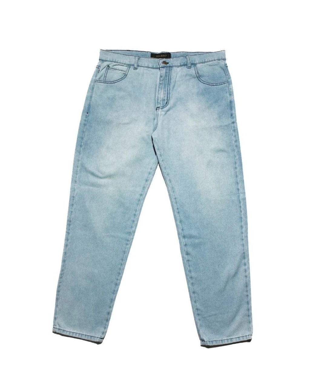 Jean regular fit, confeccionado con denim plano (rígido), con un proceso de lavado industrial “bio stone bleach localizado”. Logo bordado y alegoría en el bolsillo derecho trasero, con hilo color azul al igual que todas las costuras. Badana de cuero.